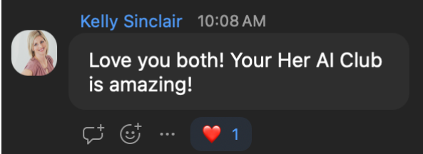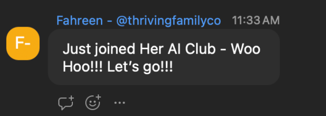 Her AI Club is the only place I don't feel like I need to explain why I'm obsessed with AI. Everyone just gets it — and then makes me even more excited about it.